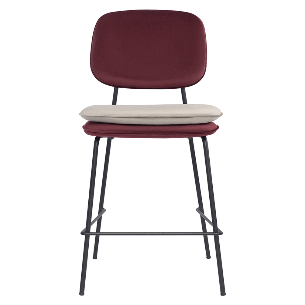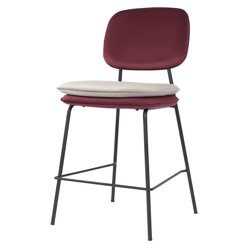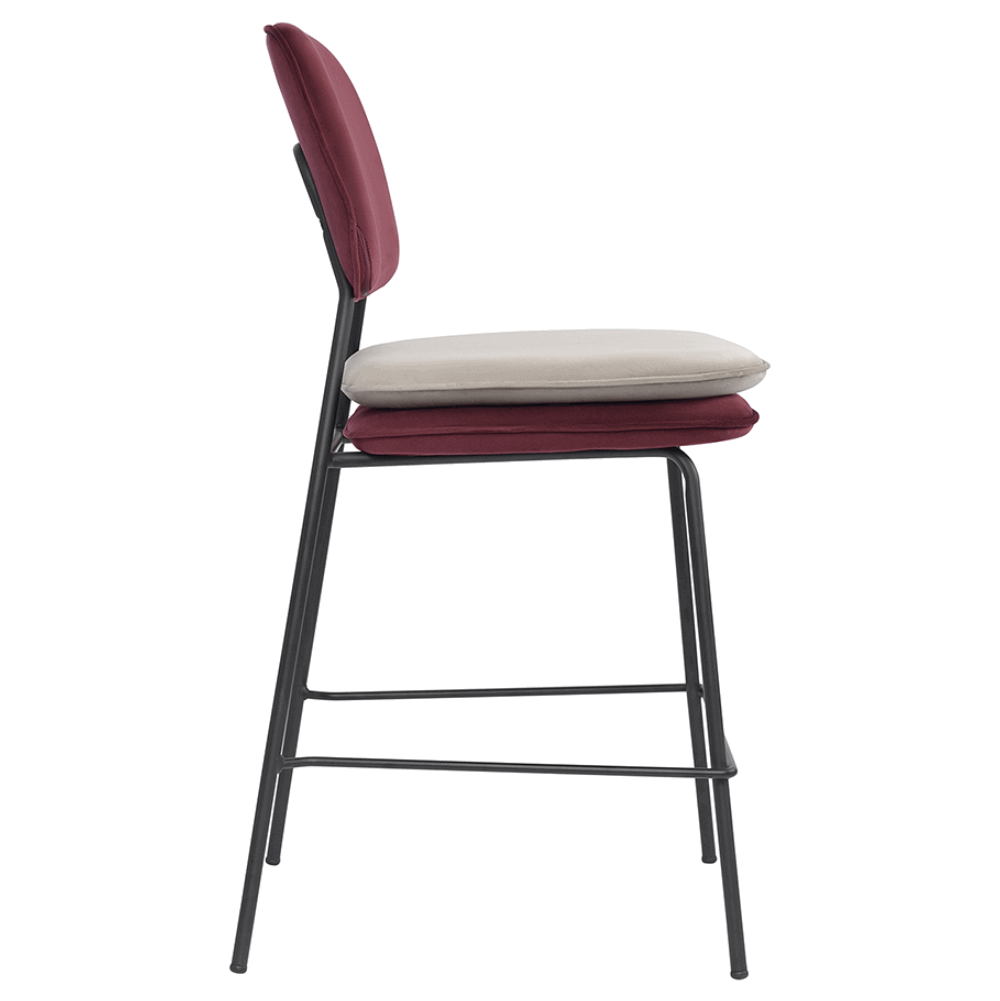Стул полубарный с контрастным кантом Пеа, велюр, бордовый/бежевый