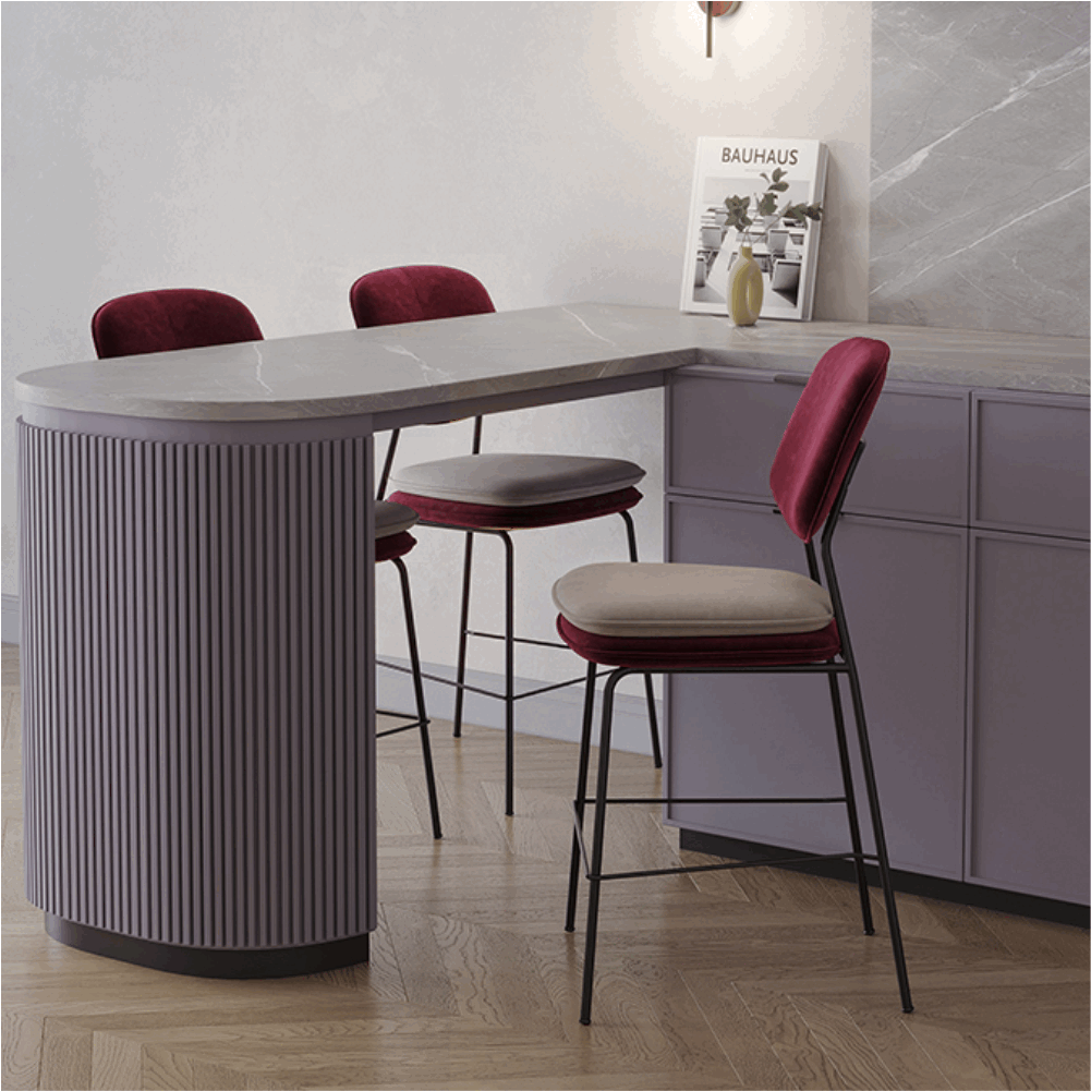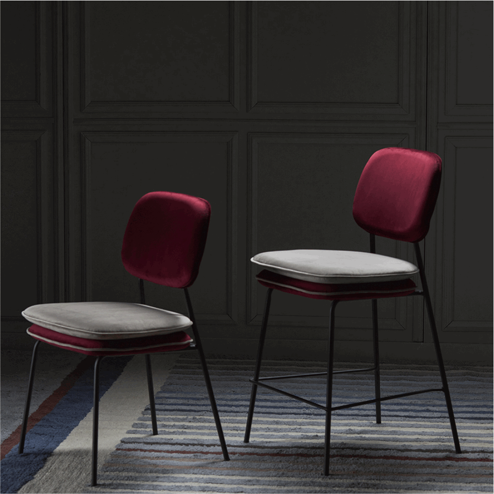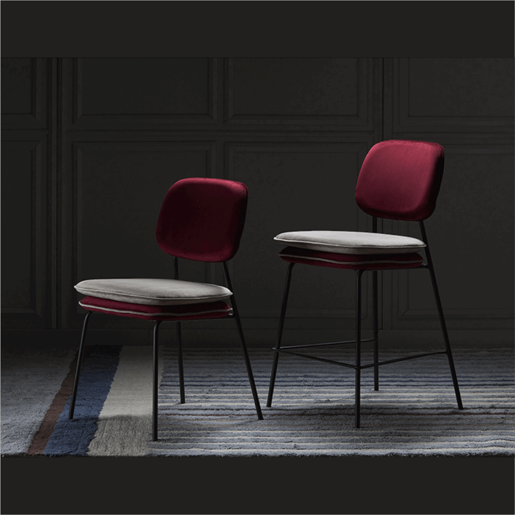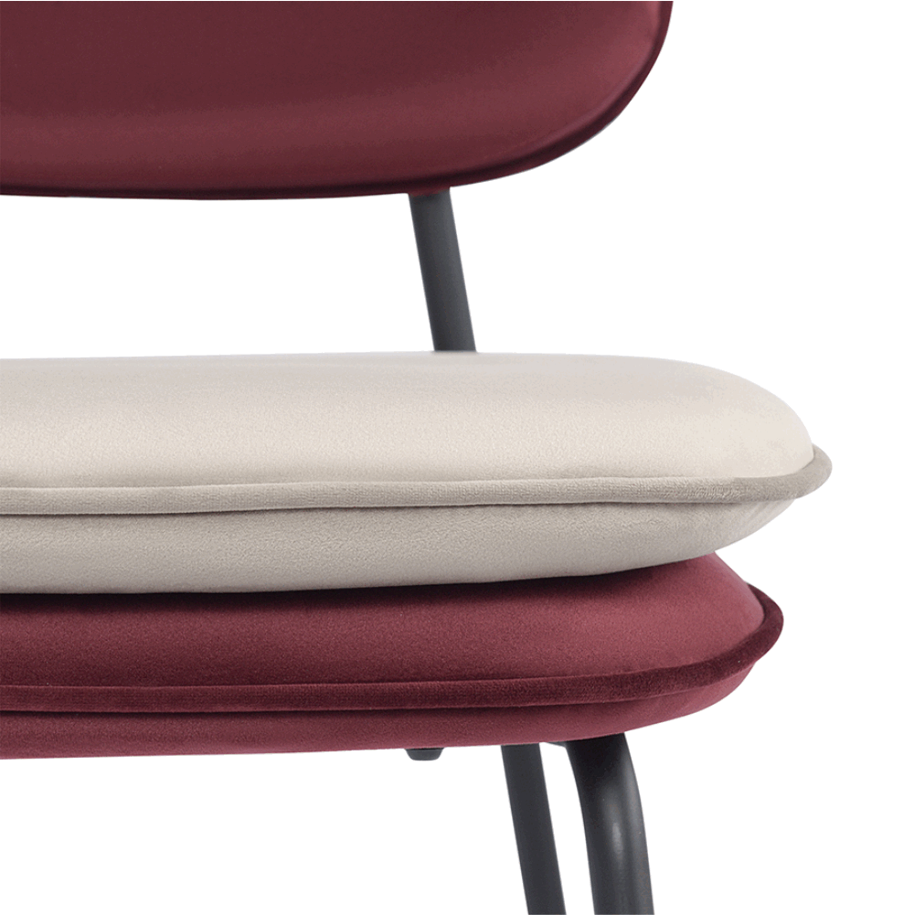 Стул полубарный с контрастным кантом Пеа, велюр, бордовый/бежевый