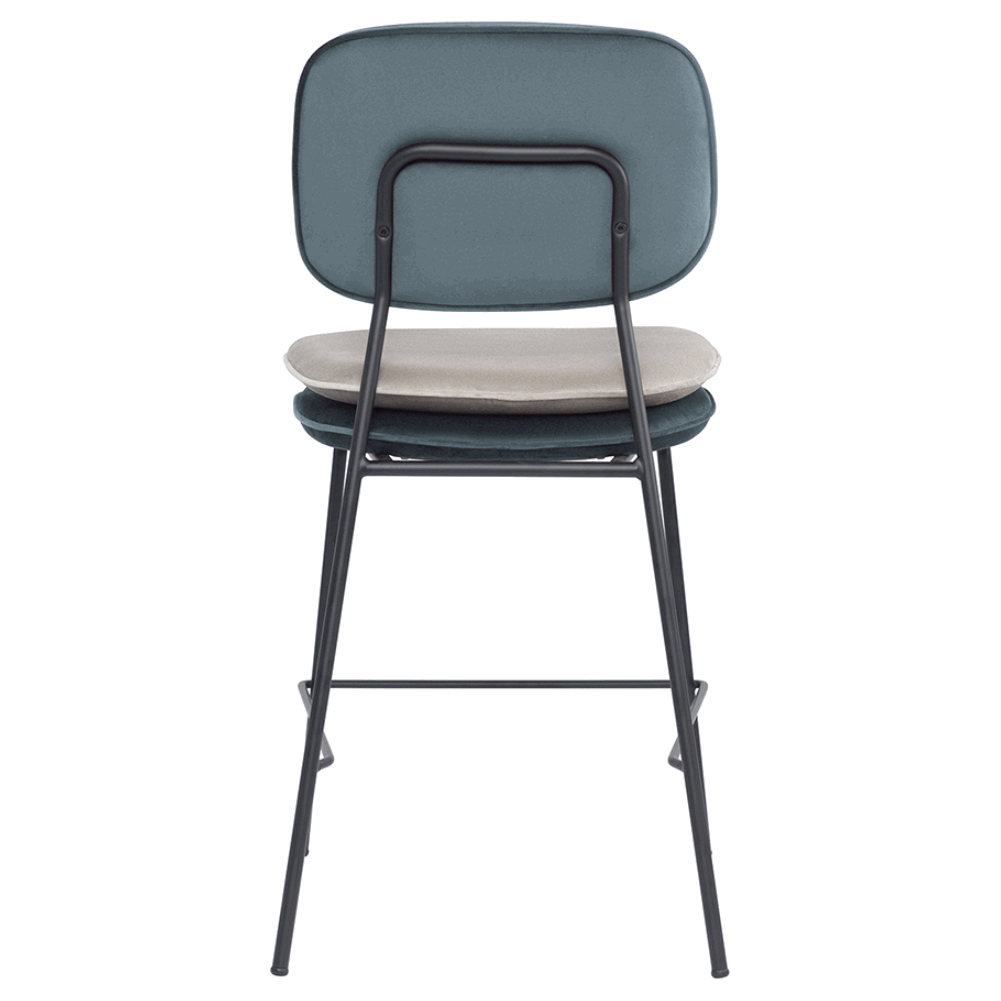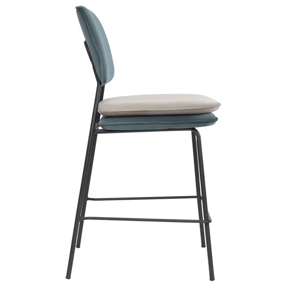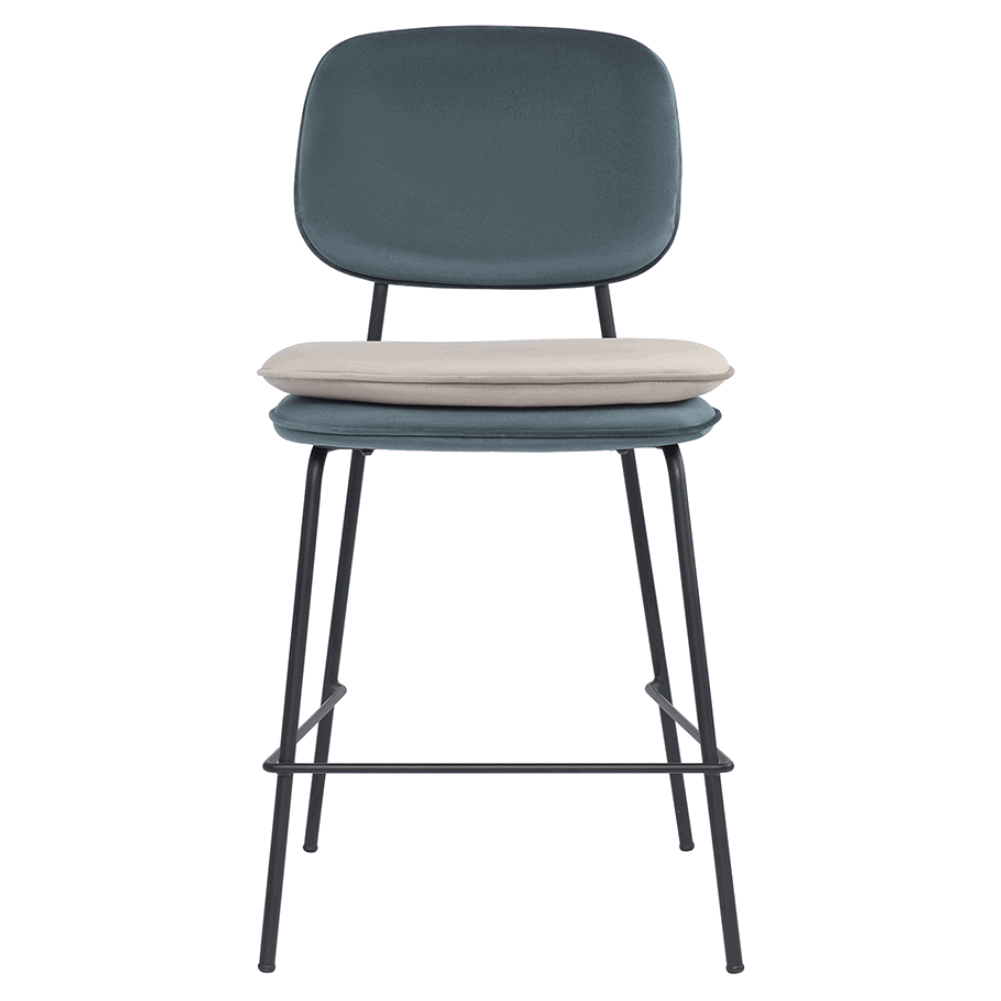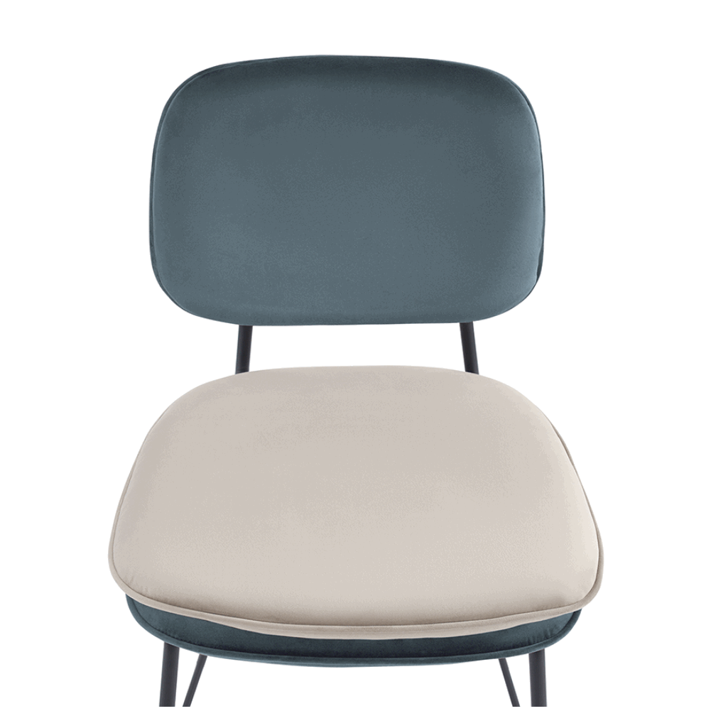 Стул полубарный с контрастным кантом Пеа, велюр, сине-зеленый/бежевый