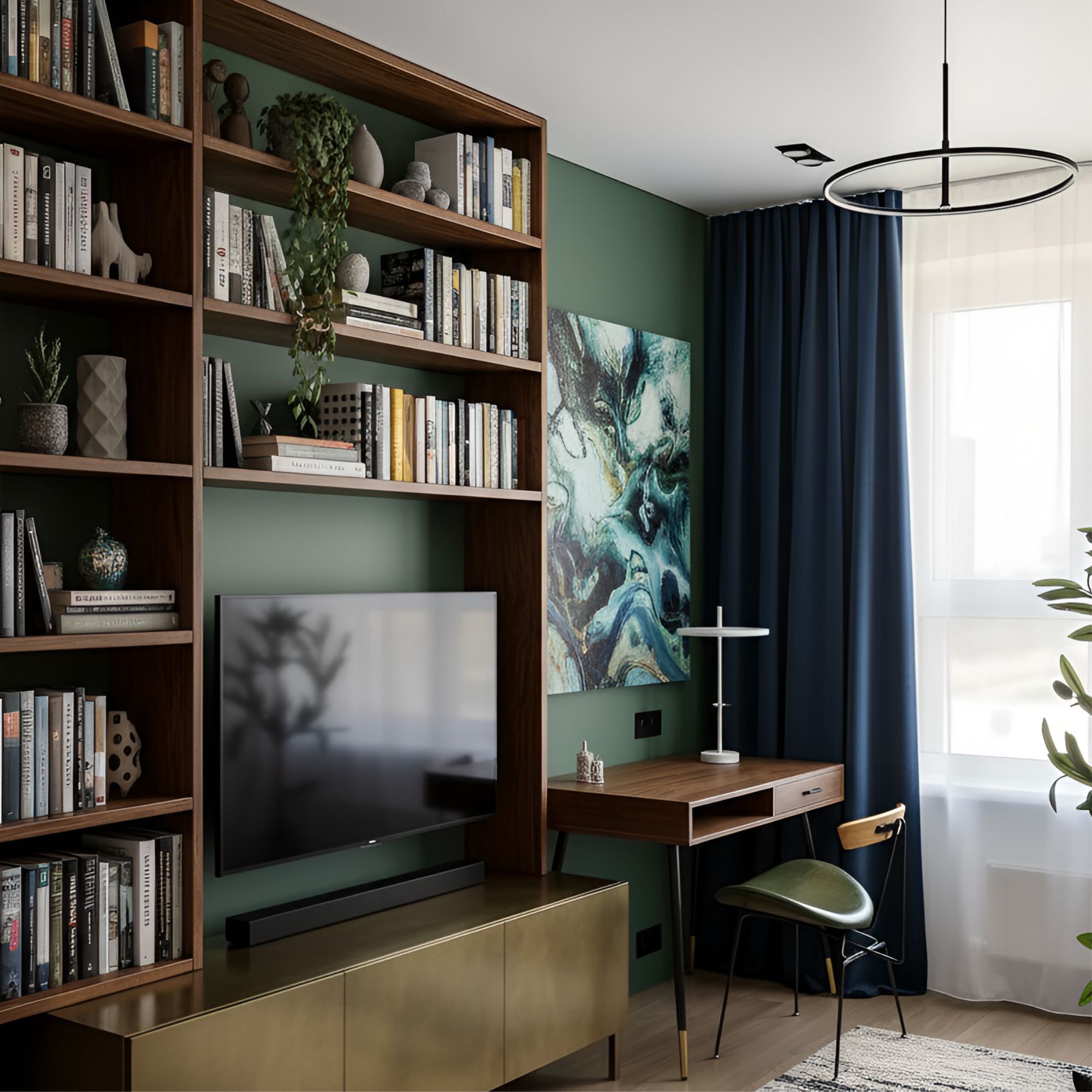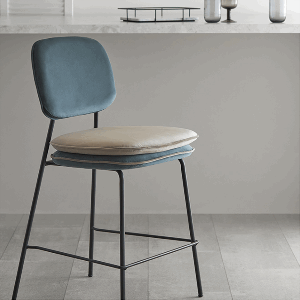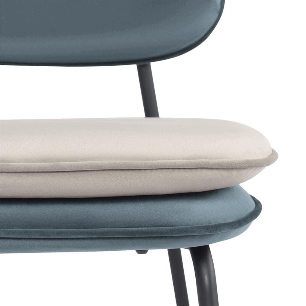 Стул полубарный с контрастным кантом Пеа, велюр, сине-зеленый/бежевый
