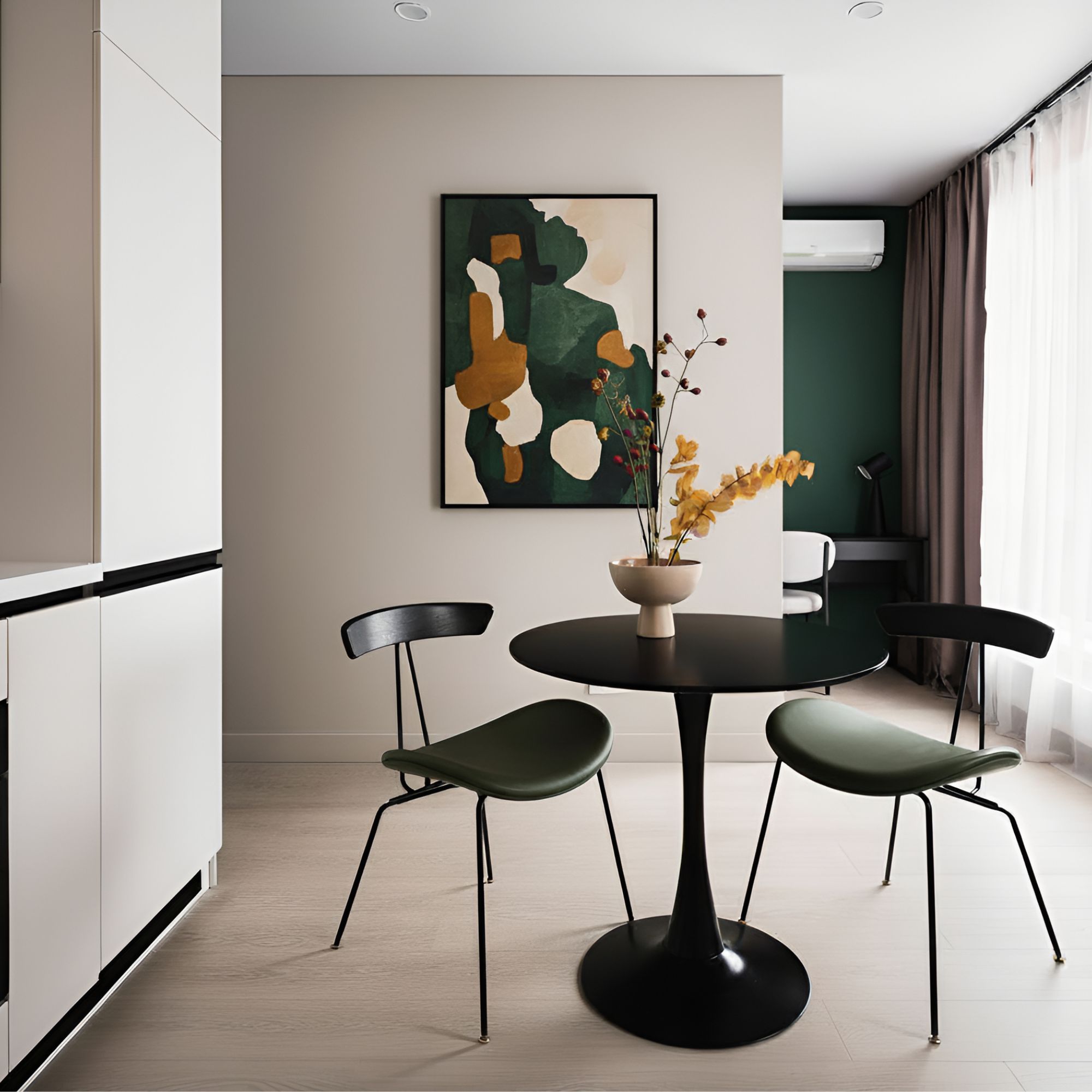 Стул Рор, round, рогожка, черный/зеленый