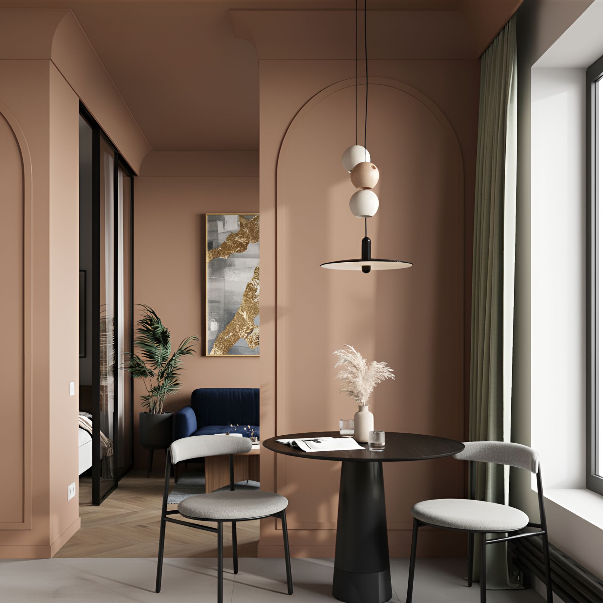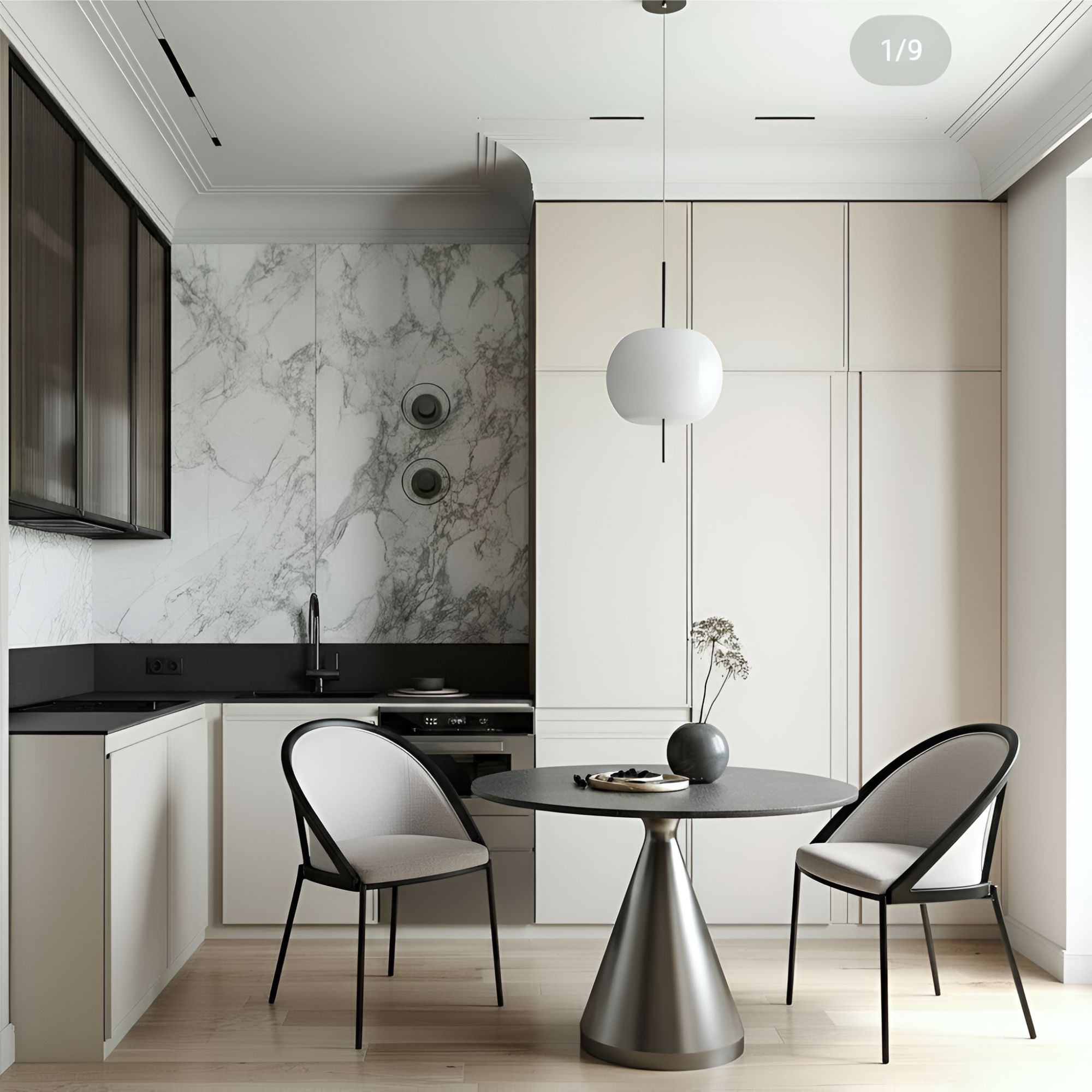 Стул Рор, round, велюр, черный/бежевый
