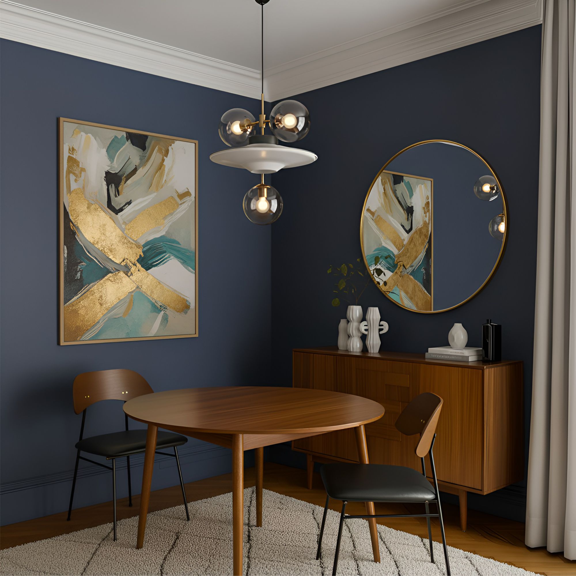 Стул с подлокотниками Пеа, велюр, темно-синий/бежевый