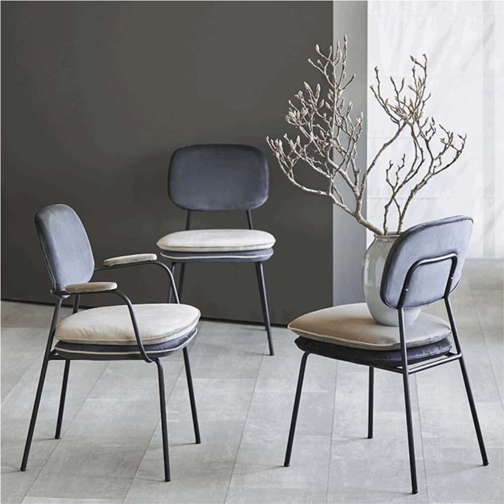 Стул с подлокотниками и контрастным кантом Пеа, велюр, темно-серый/бежевый