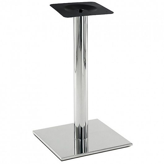 Подстолье хромированное. Размер основания: 45x45 см, диаметр трубы: 7,6 см, размер верхней площадки: 25х25 см.