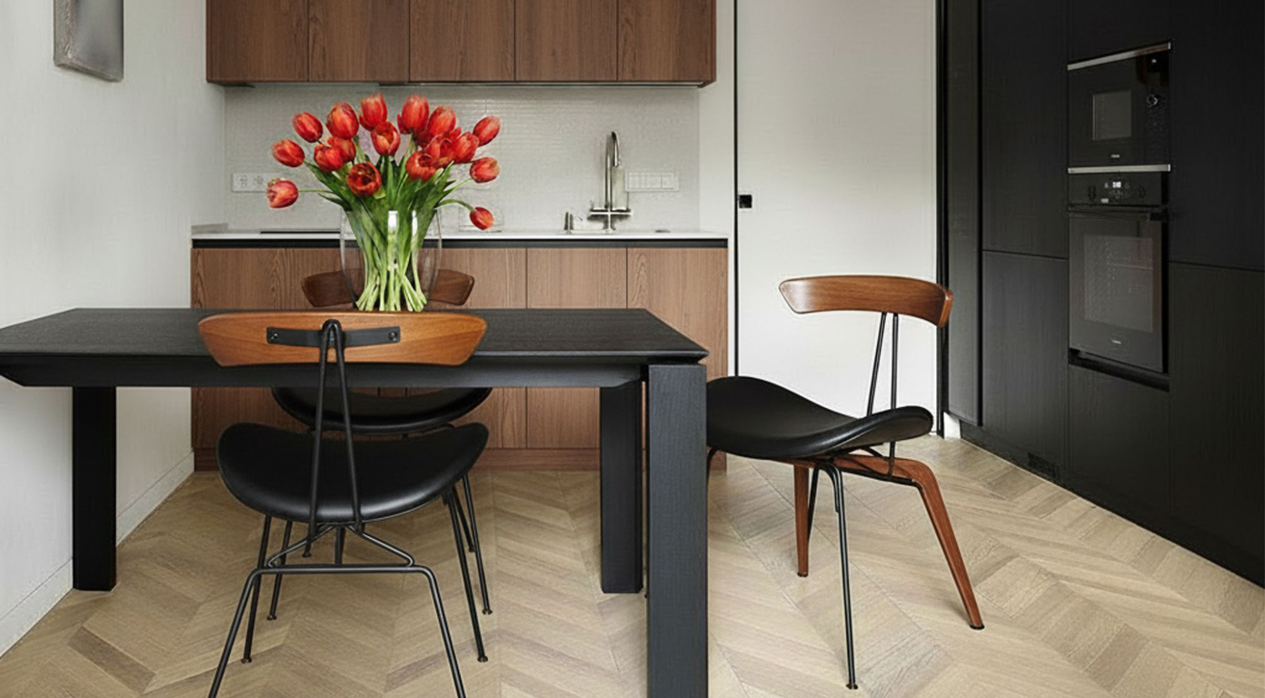 Тёмно-коричневый цвет универсален: он легко вписывается в тёплую или нейтральную палитру интерьера и гармонирует с деревом, камнем, металлом.