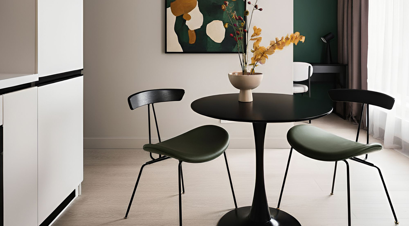Зелёный цвет сиденья — насыщенный, интерьерный, хорошо сочетается с древесными текстурами, чёрным металлом, серыми и бежевыми поверхностями.