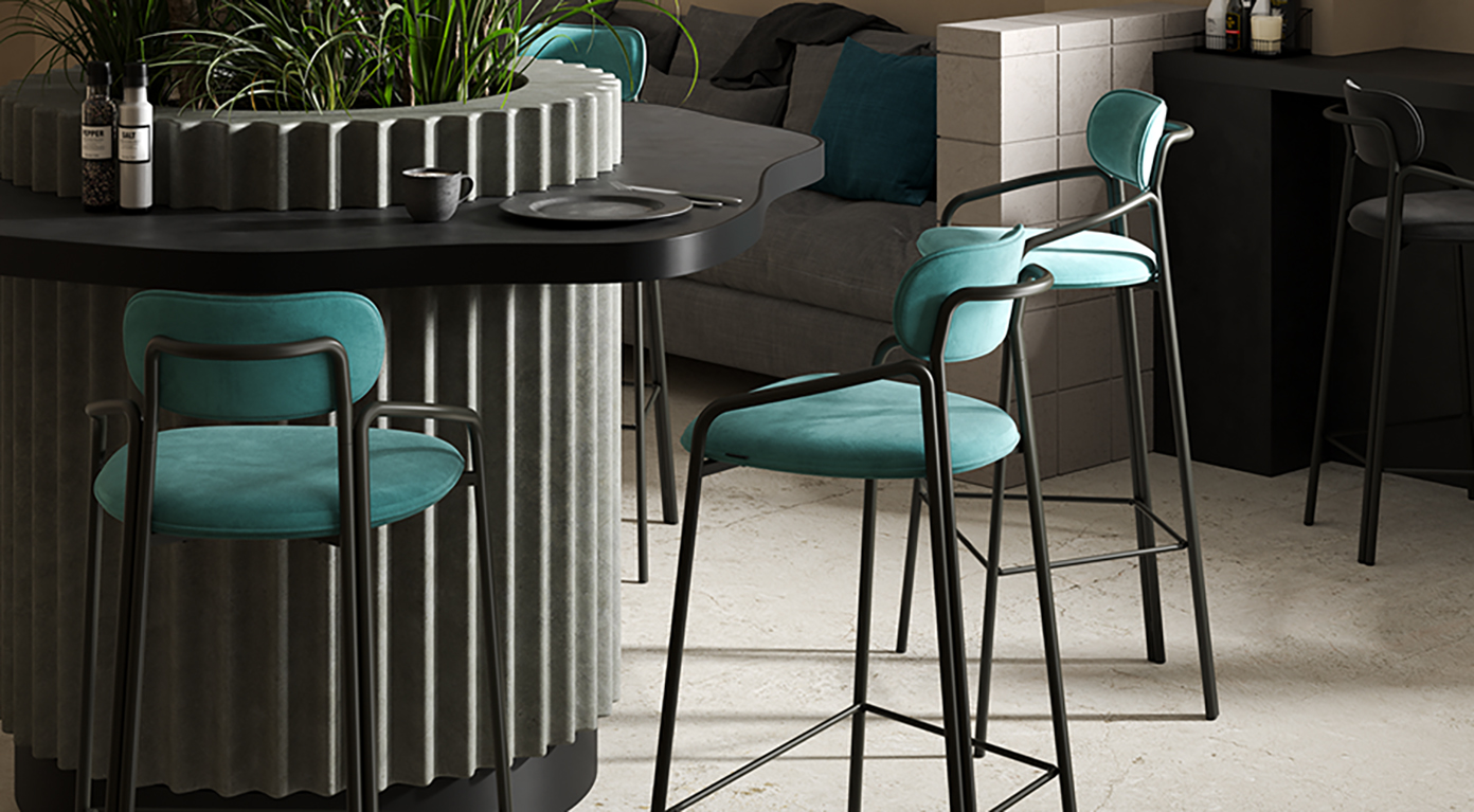 Коллекция Рор - это мебель с индивидуальным характером.Каркас барного стула Round состоит из трех стремящихся вверх элементов, которые образуют округлый, словно окутывающий корпус. За счет отсутствия прямых углов создается легкий, гармоничный силуэт.Стальное основание с порошковым покрытием делает конструкцию прочной и надежной, а мягкий велюр с бархатистой текстурой обеспечивает тактильный комфорт. Ткань обивки обладает высокими показателями износостойкости. Используемый в качестве наполнителя пенополиуретан отличается комфортной плотностью и жесткостью.Все материалы отвечают высоким стандартам практичности, долговечности и экологической безопасности.Стул украсит собой любой современный интерьер: подойдет для оформления кухни, барной зоны в кафе и ресторане.Материалы: сталь, фанера, 100% пенополиуретан, 100% полиэстер. Размеры: 54х61х100 см. Высота сиденья: 77 см. Ширина сиденья: 41 см. Глубина сиденья: 41 см. Высота спинки: 24 см. Ширина спинки: 31 см. Максимальная нагрузка: 102 кг. Цвет: черный/светло-бирюзовый.Загрязнения удалять с поверхностей мыльным раствором воды при помощи мягкой губки или салфетки.