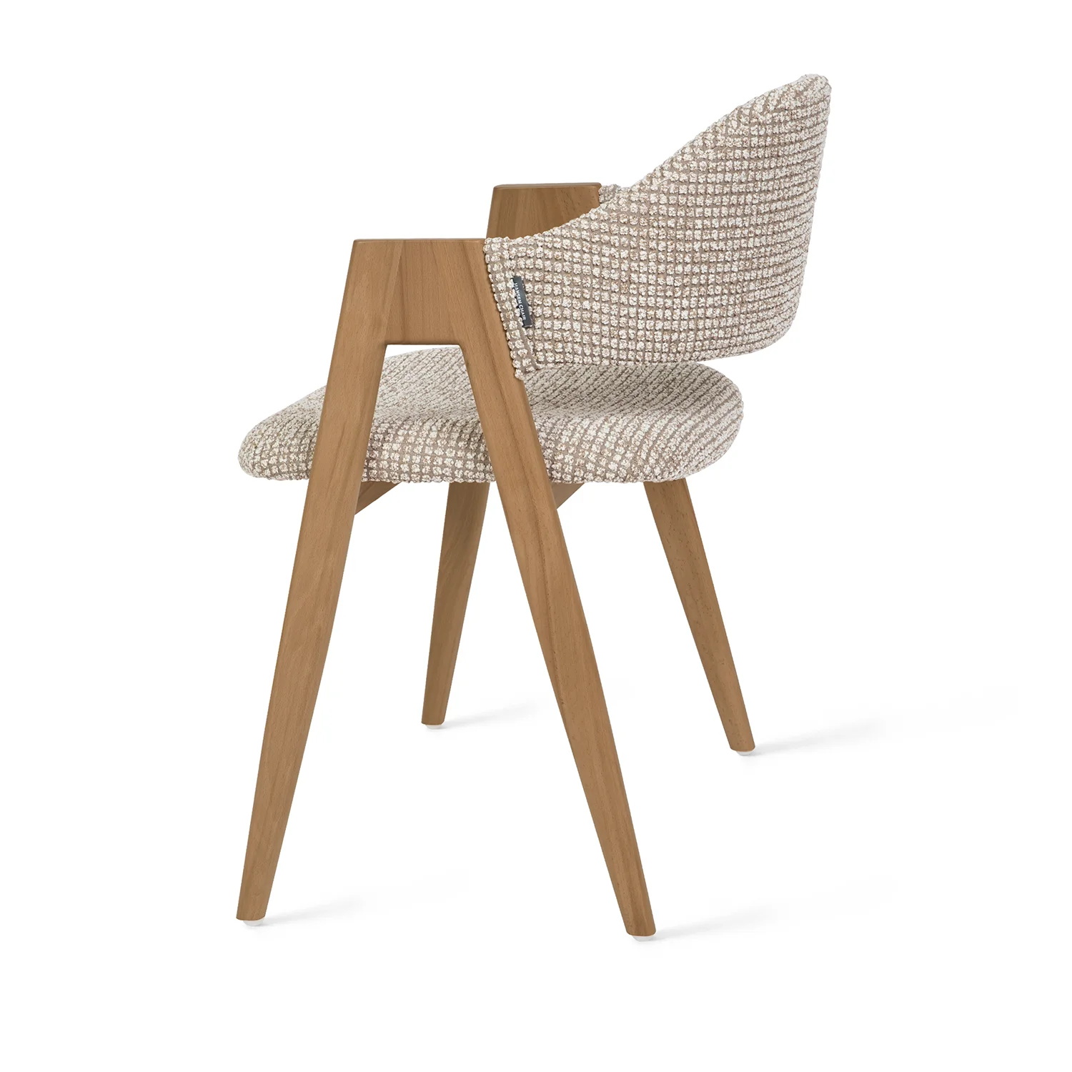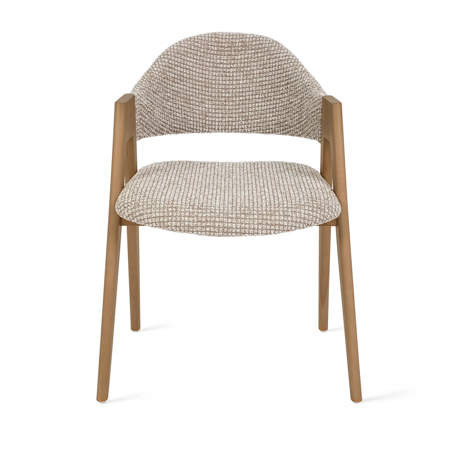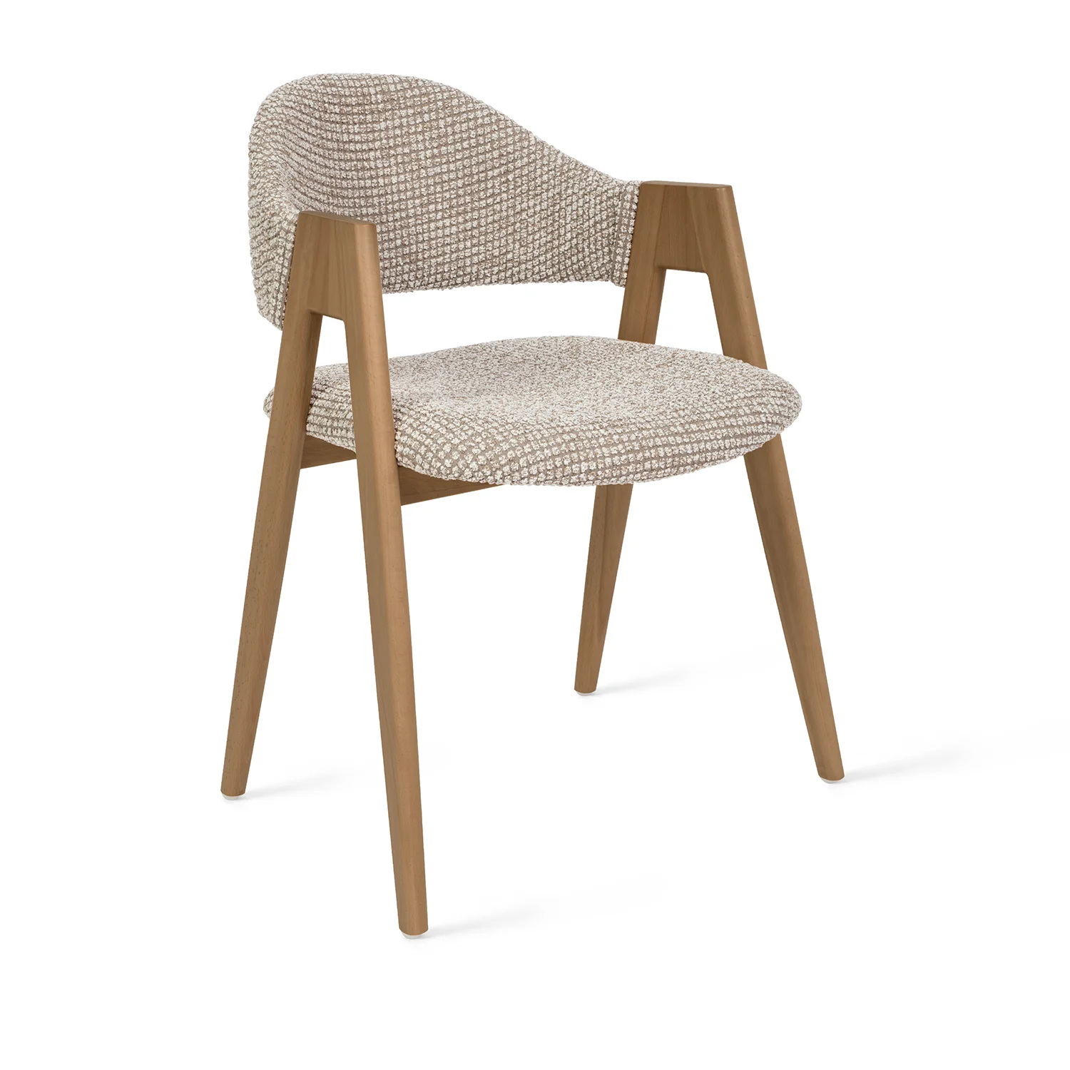 Ткань букле не только визуально выделяется, но и дарит комфорт — мягкая, с мелкой текстурой, она сохраняет эстетичный вид даже при активной эксплуатации. Широкое сиденье и поддерживающая спинка делают посадку удобной как за столом, так и в переговорной зоне или лаунж-пространстве.