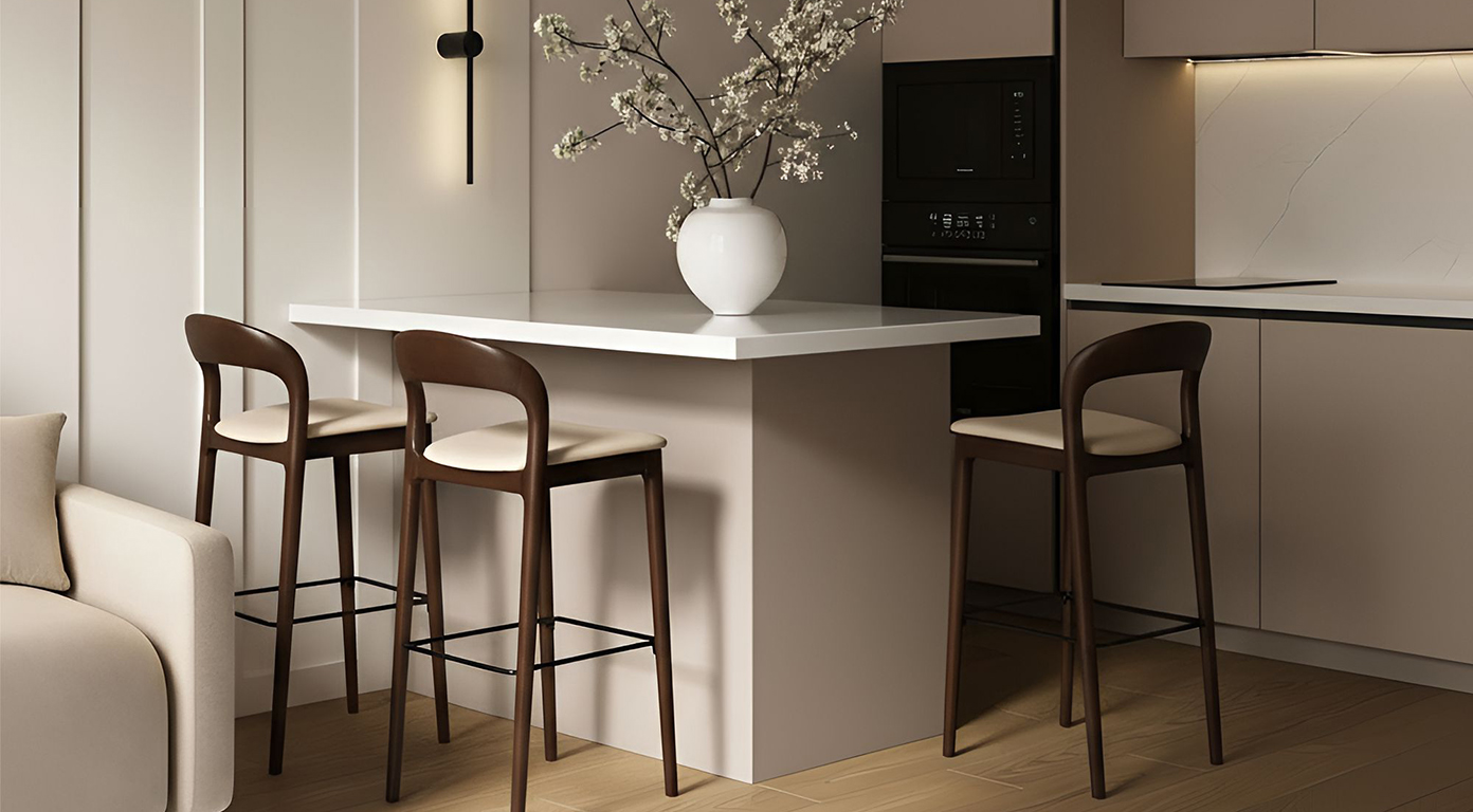 Леман — удачное решение для интерьеров с барной стойкой, небольших кафе, ресторанов и коворкингов. Сдержанный дизайн, нейтральный цвет и компактные размеры позволяют легко интегрировать модель в любой современный интерьер.