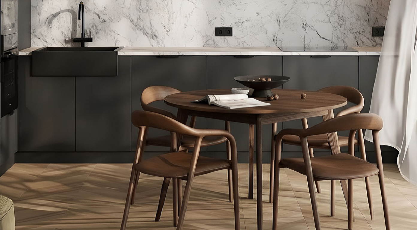 Такая модель отлично подойдёт для ресторанов, переговорных, галерей, приёмных или частных интерьеров, где важны чистота линий, натуральные материалы и выдержанная эстетика.
