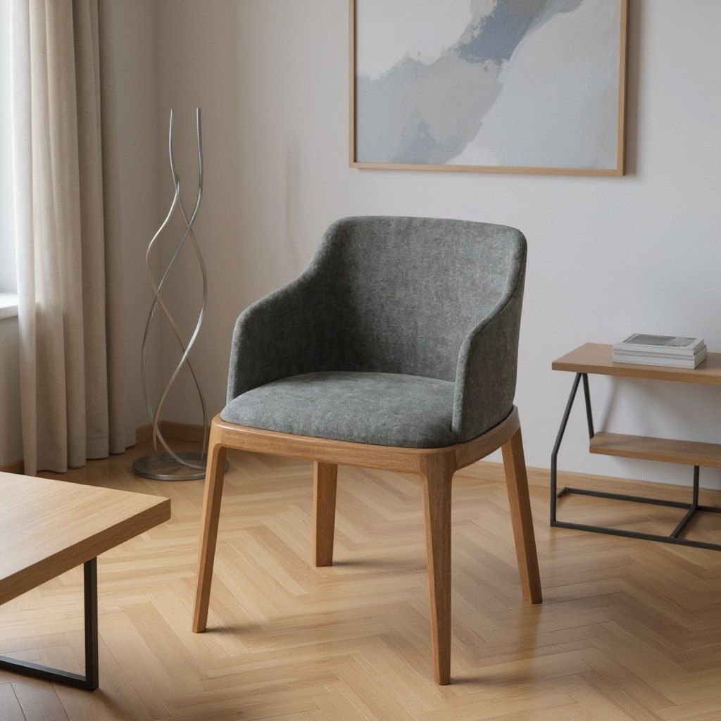 Стул Кан в этом цвете — это гармония добротных материалов, выверенной геометрии и сдержанной цветовой гаммы. Каркас из массива берёзы окрашен в тёплый, благородный оттенок дуб антик, подчёркивающий натуральную текстуру древесины. Обивка выполнена в цвете Грета грей — мягкий серо-графитовый тон, который делает образ стула универсальным и современным.