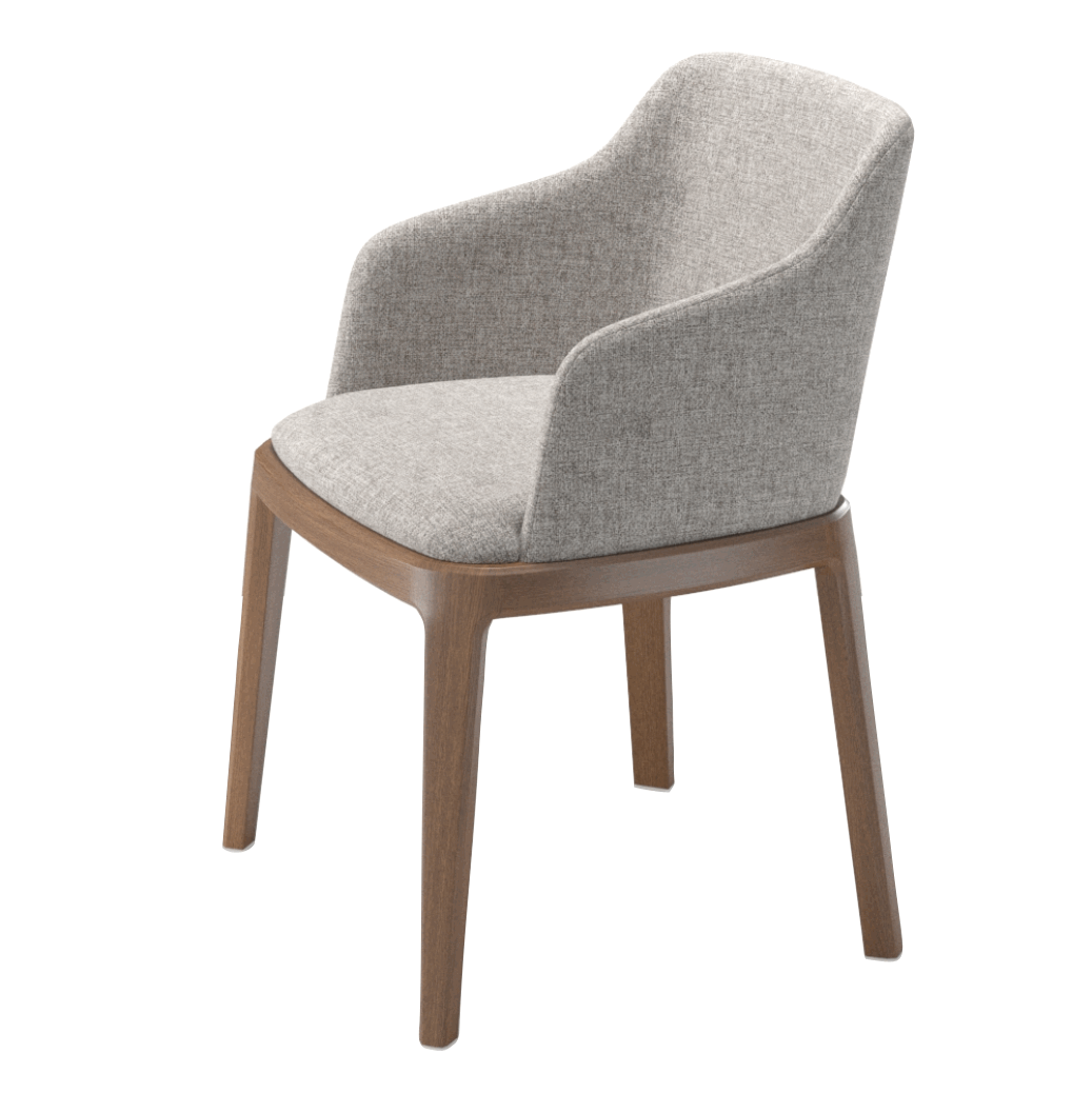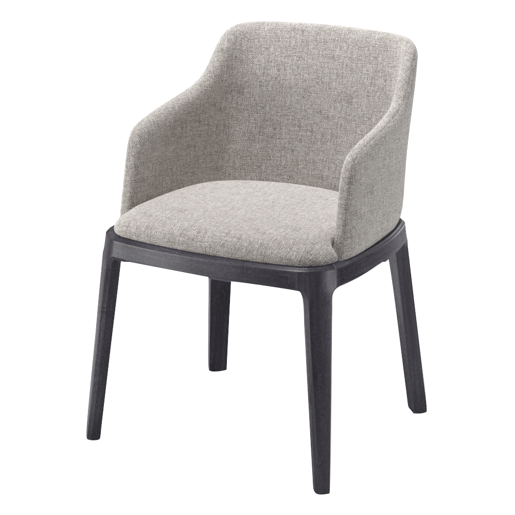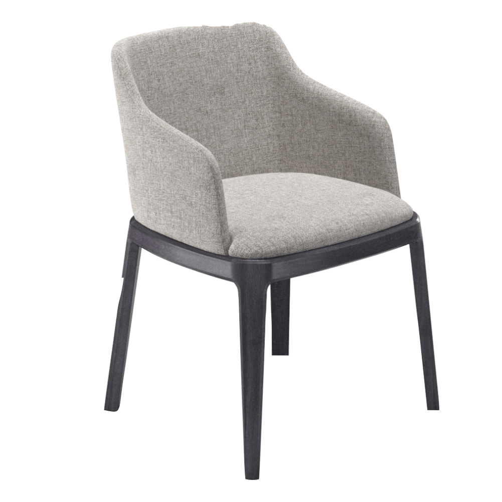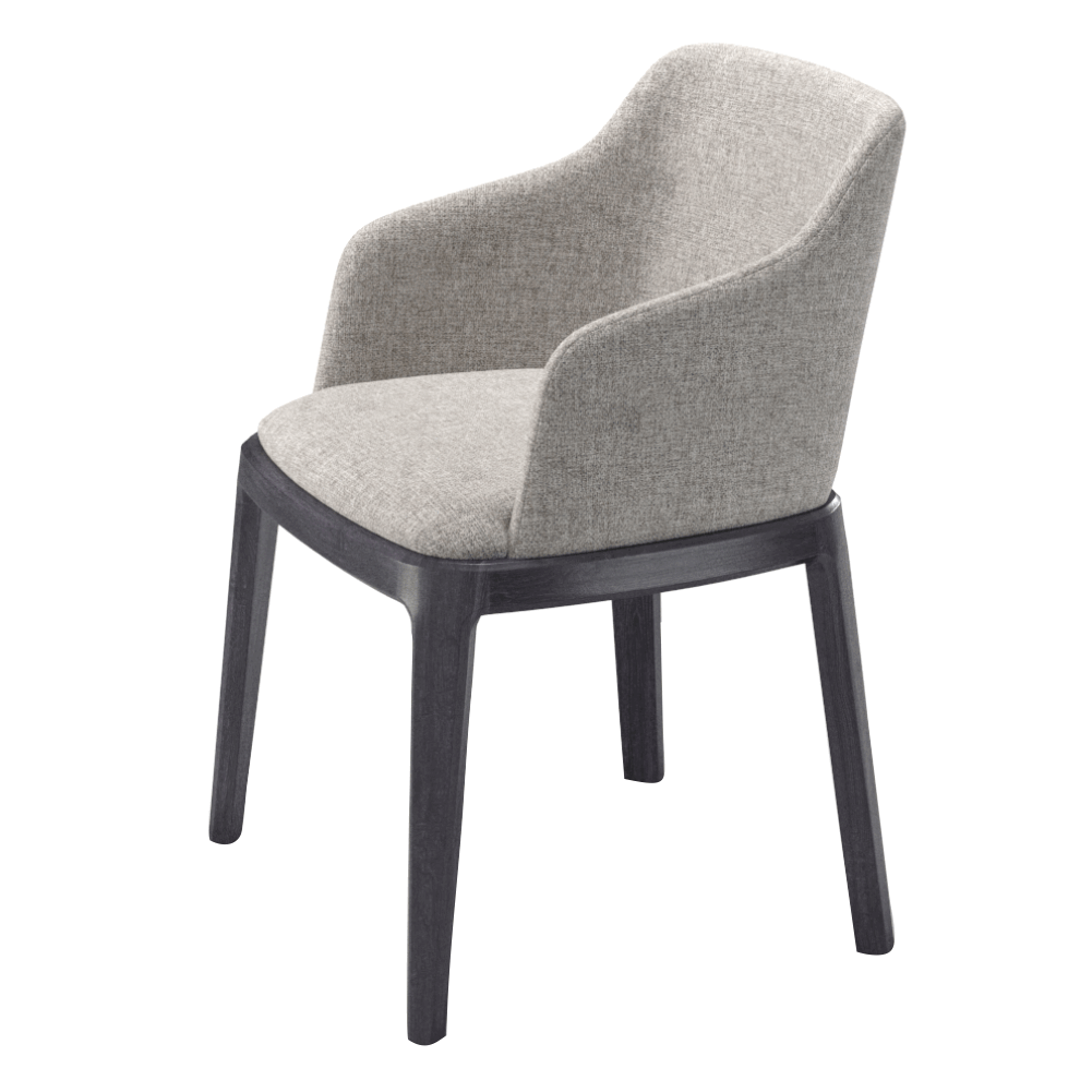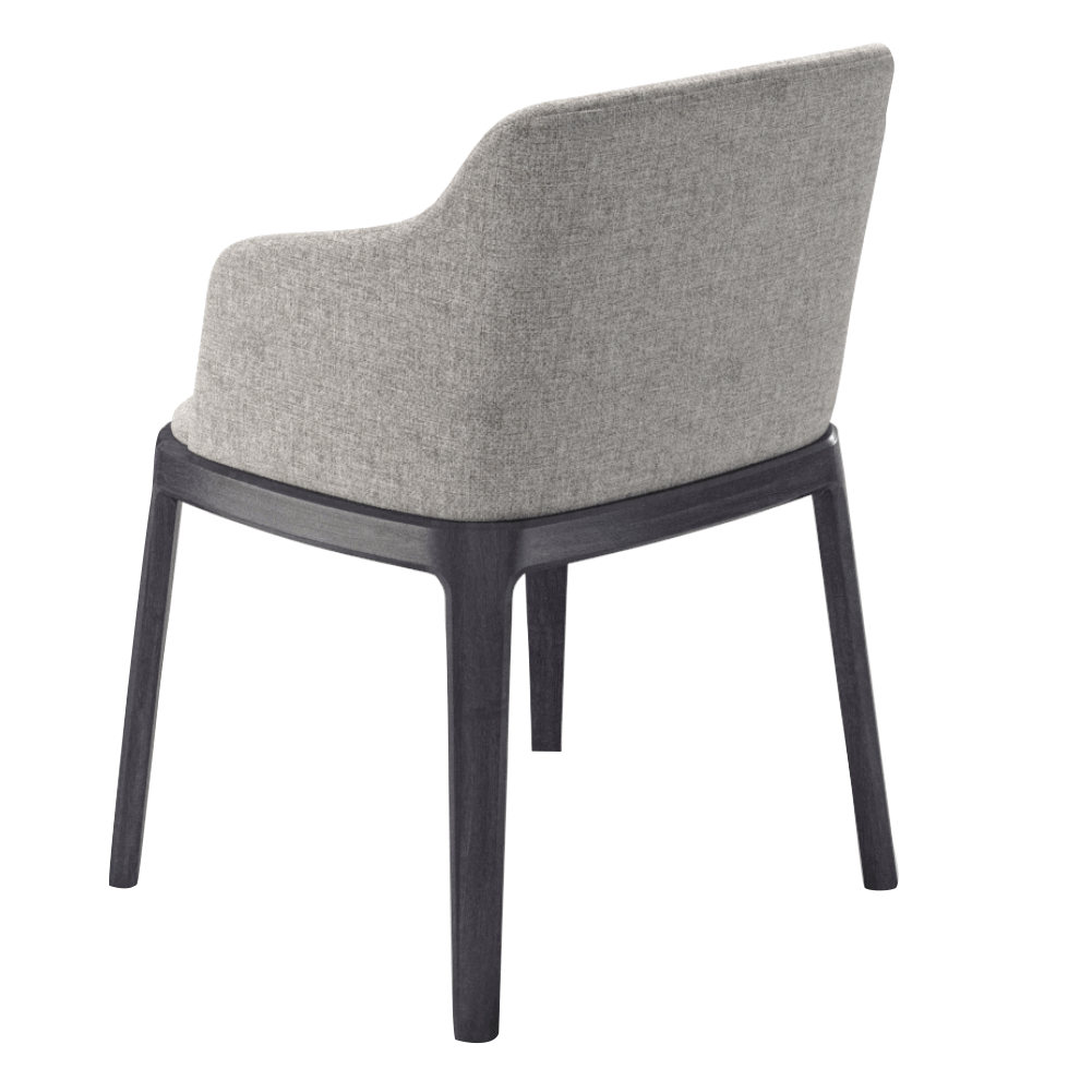 Стул Кан — сочетание выразительной геометрии и благородной сдержанности в отделке. Основание из массива берёзы окрашено в глубокий оттенок тёмного дуба, который подчёркивает фактуру дерева и придаёт модели основательность. Серое текстильное сиденье визуально уравновешивает образ, внося лёгкость и универсальность.