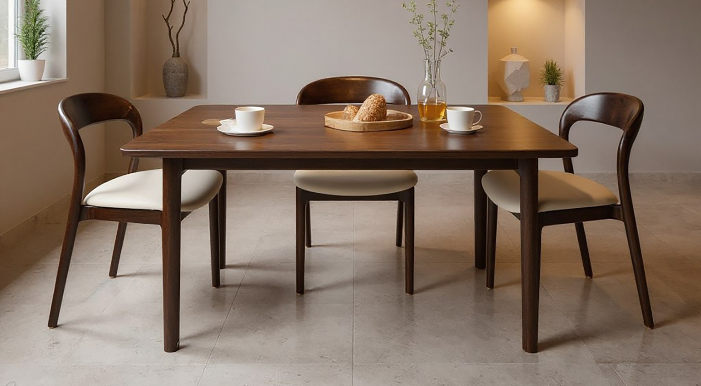 Сиденье и спинка обиты экокожей в мягком бежевом оттенке. Этот материал устойчив к загрязнениям и легко очищается, что делает стул особенно удобным для активной эксплуатации: дома, в ресторане или офисном пространстве.