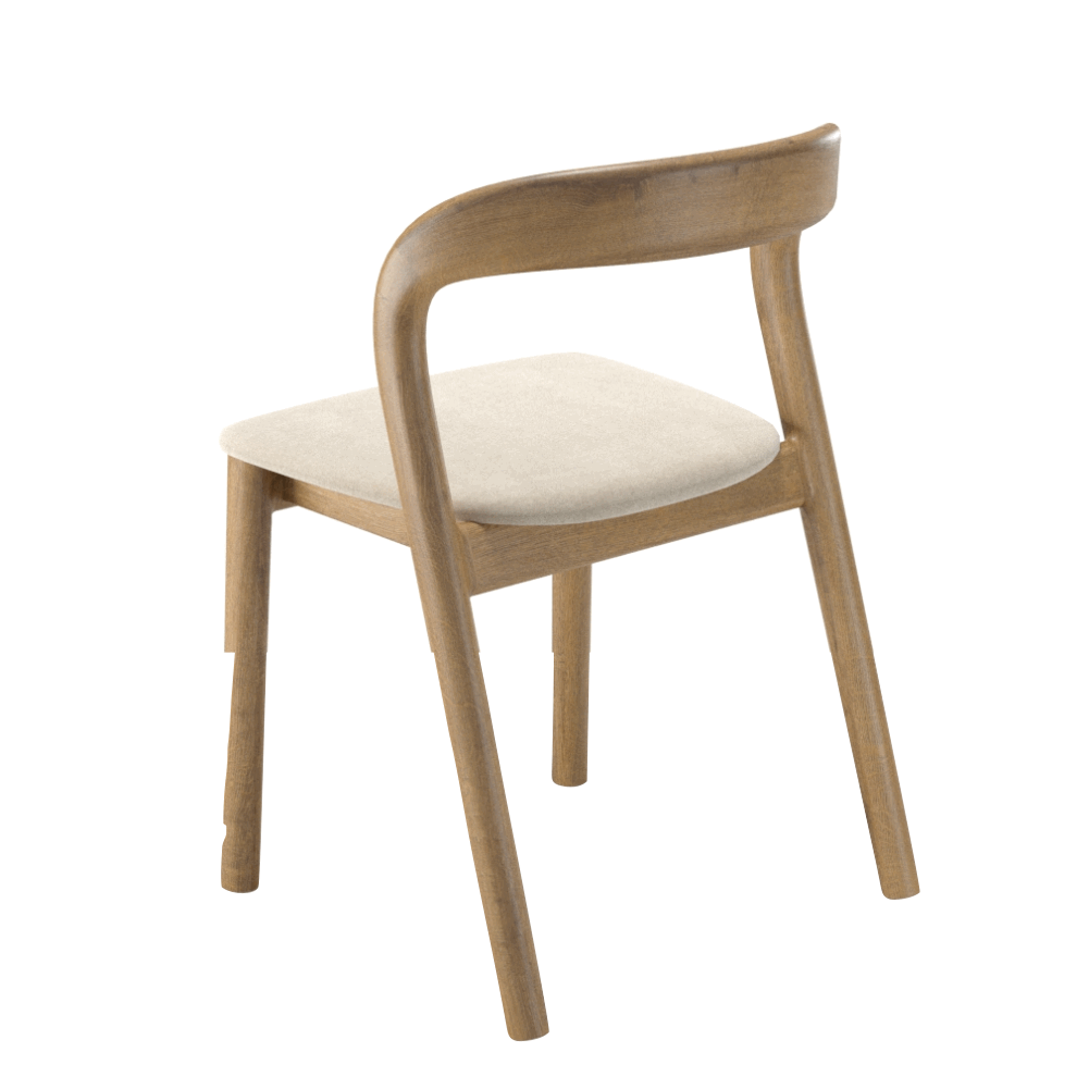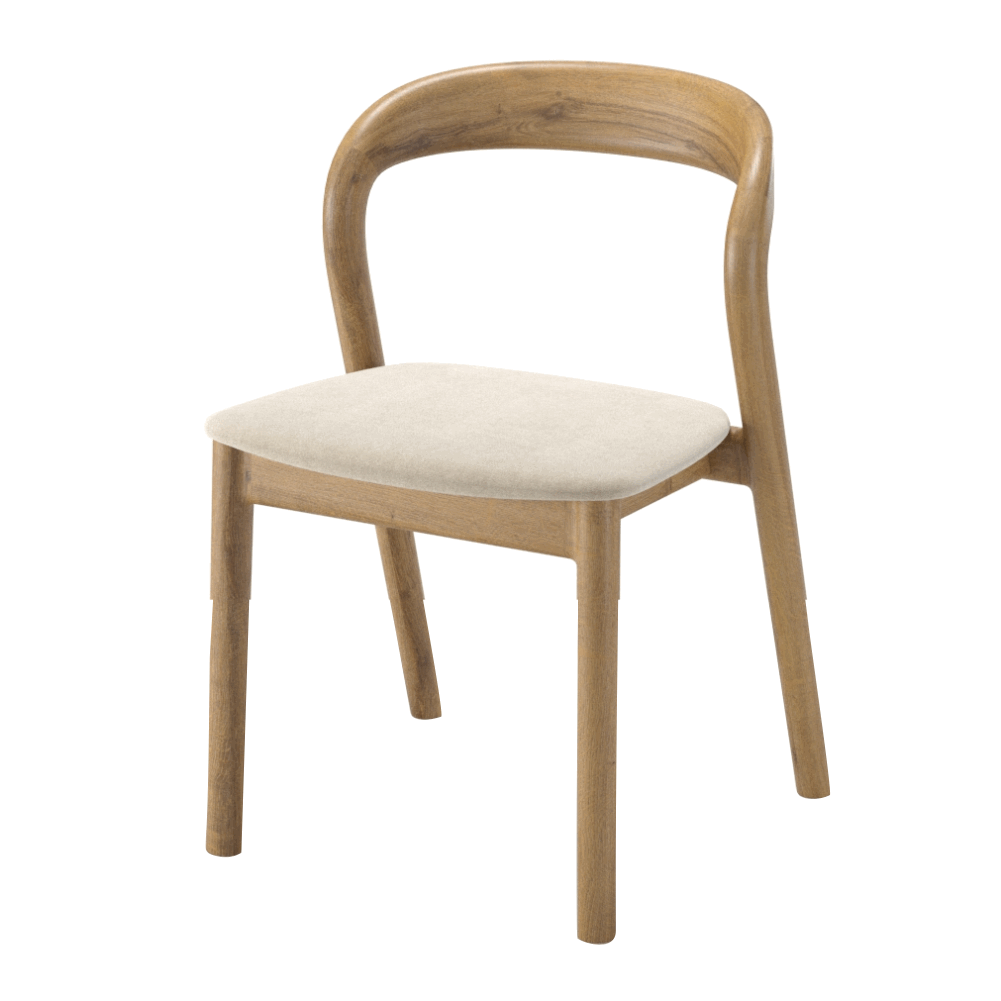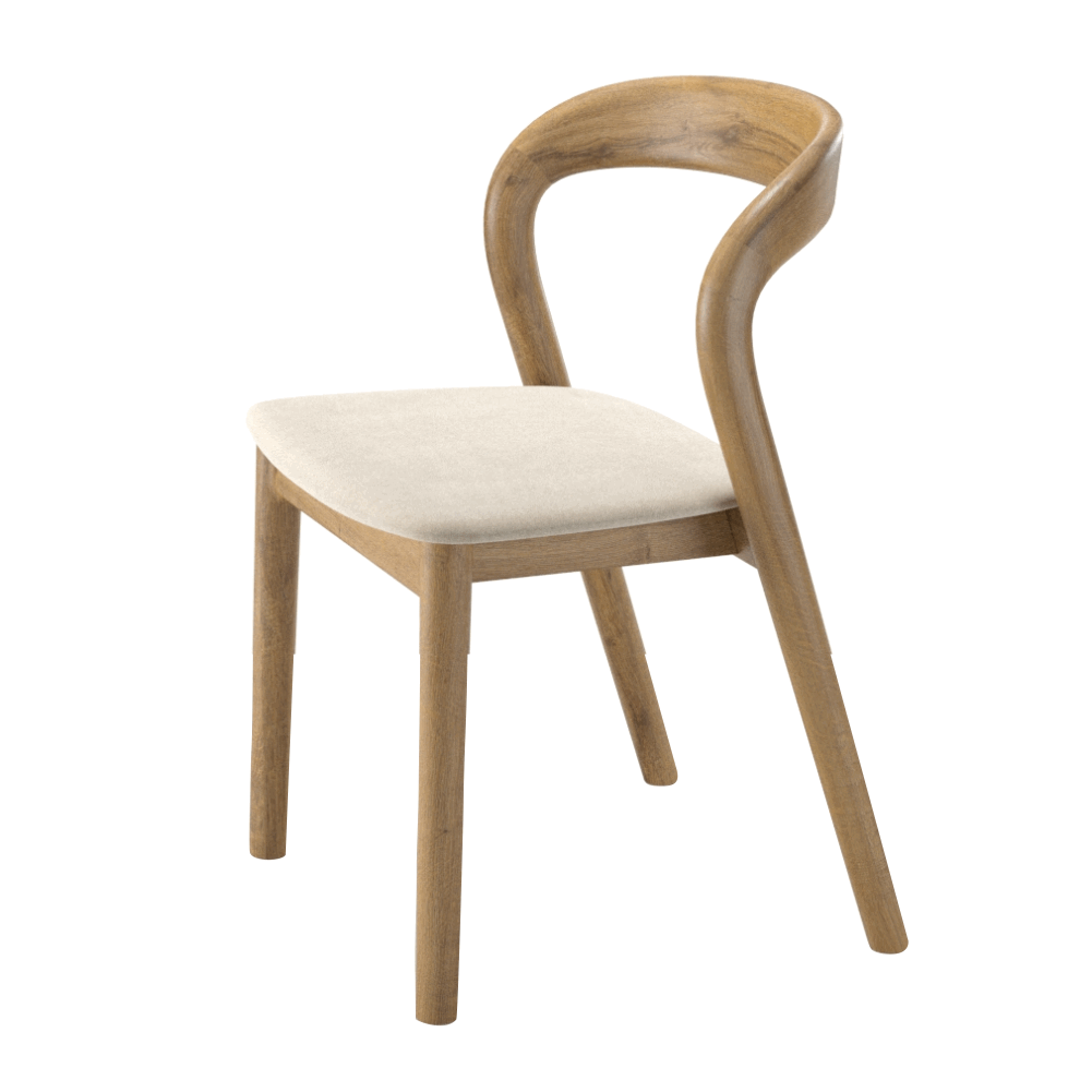 Сиденье и спинка обиты тканью светлобежевого оттенка — мягкой, приятной на ощупь и практичной в повседневной эксплуатации. Нейтральный цвет делает модель универсальной: её легко сочетать с деревом, металлом, камнем и пастельными тонами в интерьере.