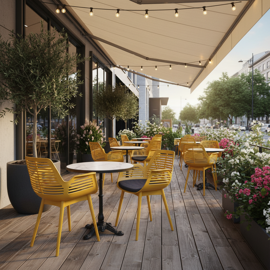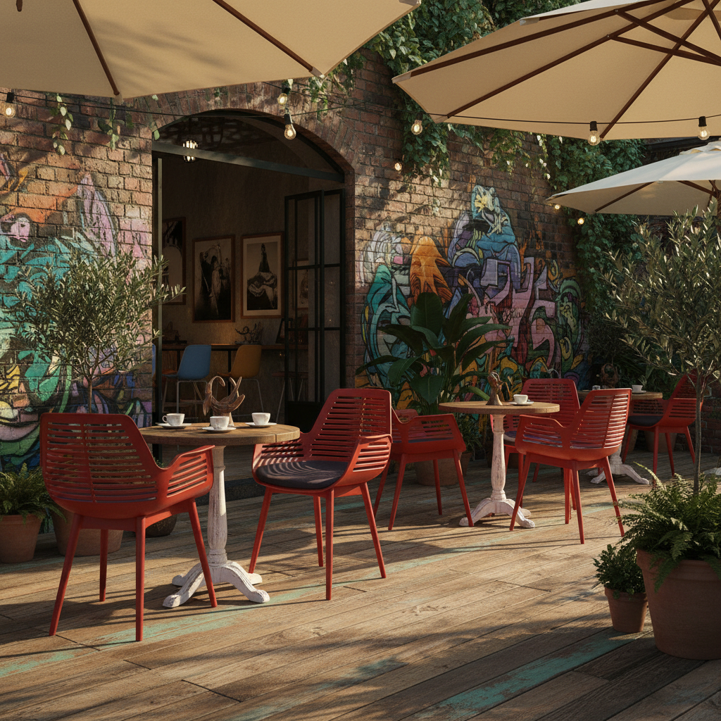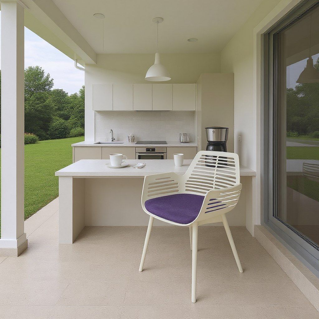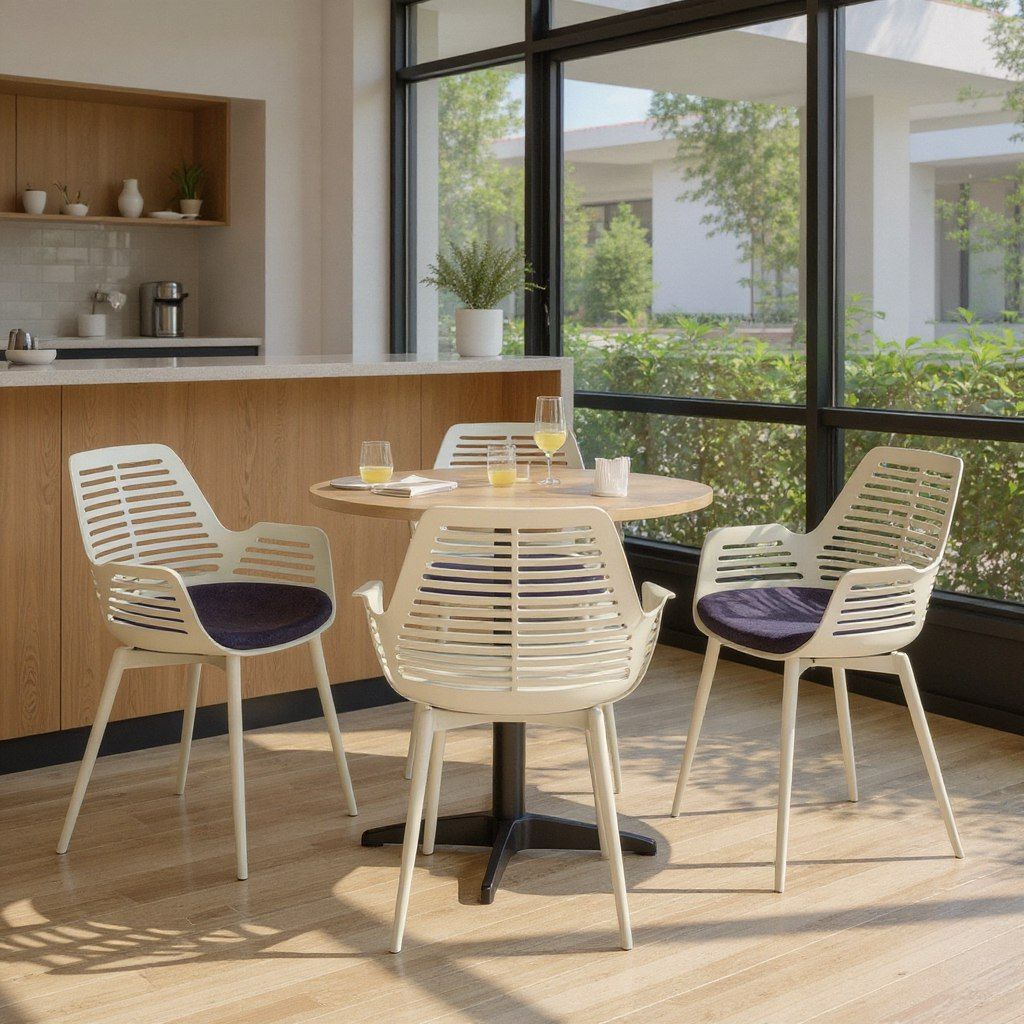 Подлокотники и эргономичная форма спинки обеспечивают комфорт даже при длительном использовании. Стул подходит как для использования в помещении (кухня, обеденная зона, офис), так и на открытом воздухе (кафе, терраса, веранда).
