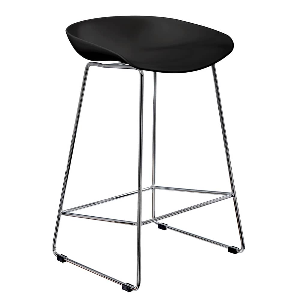 Утончённые металлические опоры, сиденье из пластика с невысокой спинкой - это минималистический современный дизайн полубарного стула NEO черный с черными ножками.