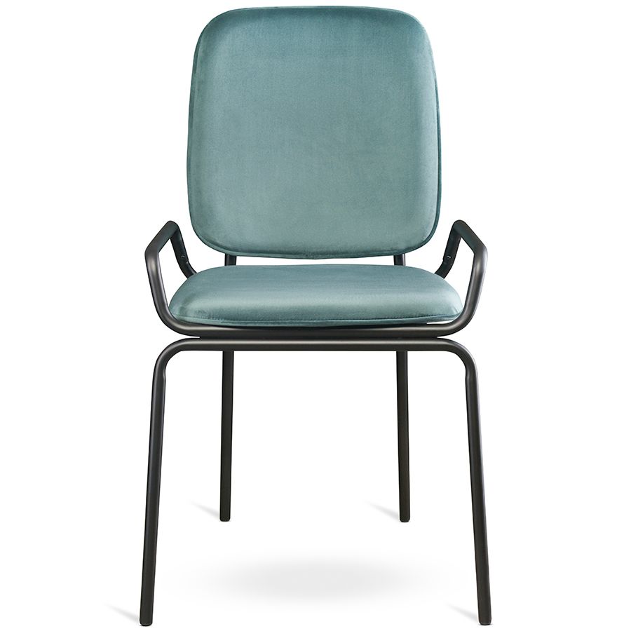 Коллекция Рор – это мебель с индивидуальным характером. Отправной точкой создания линейки стало динамичное движение, воплощенное в логотипе Олимпиады 80, где беговые дорожки образуют силуэт Спасской башни.Стул Double Frame имеет удобную посадку за счет высокой спинки и широкого сиденья. Отсутствие острых углов создает легкий, гармоничный силуэт. Стальной каркас с порошковым покрытием делает конструкцию прочной и надежной, а мягкий велюр с бархатистой текстурой обеспечивает тактильный комфорт. Ткань обивки обладает высокими показателями износостойкости. Используемый в качестве наполнителя пенополиуретан отличается комфортной плотностью и жесткостью.Все материалы отвечают высоким стандартам практичности, долговечности и экологической безопасности.Стул украсит собой любой современный интерьер: подойдет для оформления обеденной группы, рабочего пространства или зоны отдыха.Материалы: сталь, фанера, 100% пенополиуретан, 100% полиэстер. Размеры: 50х61х84 см. Высота сиденья: 47 см. Ширина сиденья: 40 см. Глубина сиденья: 38 см. Высота спинки: 39 см. Ширина спинки: 37 см. Максимальная нагрузка: 102 кг. Цвет: черный/зеленый.Загрязнения удалять с поверхностей мыльным раствором воды при помощи мягкой губки или салфетки.