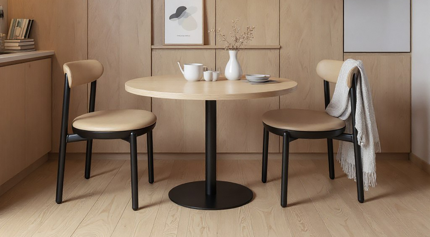 Габариты (49×47×76,5 см, высота посадки 46 см) оптимальны для стандартных обеденных и рабочих зон. Компактная форма без подлокотников позволяет эффективно использовать пространство — особенно актуально в небольших помещениях.
