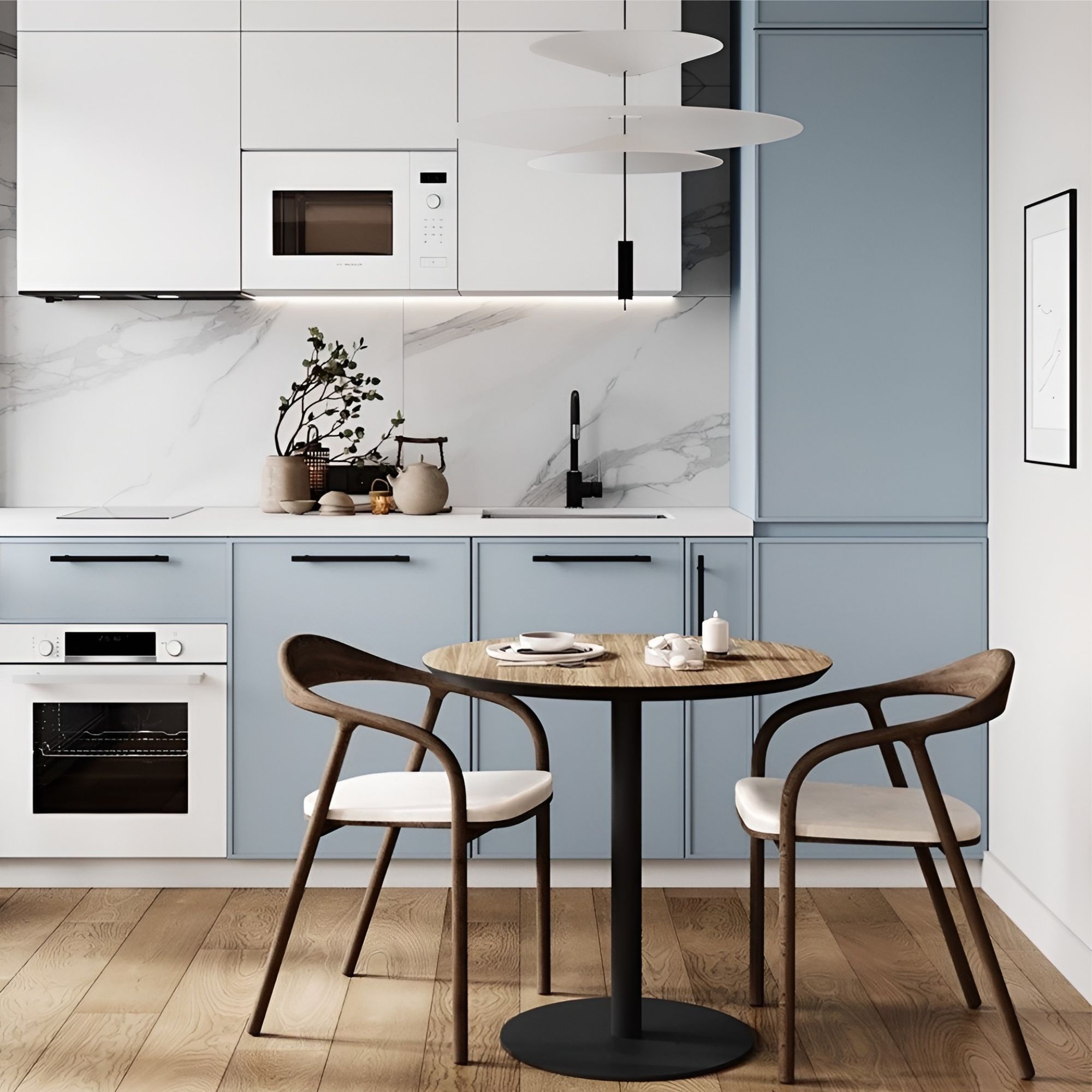 Габариты модели (49×47×76,5 см) и высота посадки 46 см делают стул удобным для стандартных обеденных столов и рабочих поверхностей. Вес — всего 5 кг, благодаря чему стул легко перемещать без ущерба для стабильности.