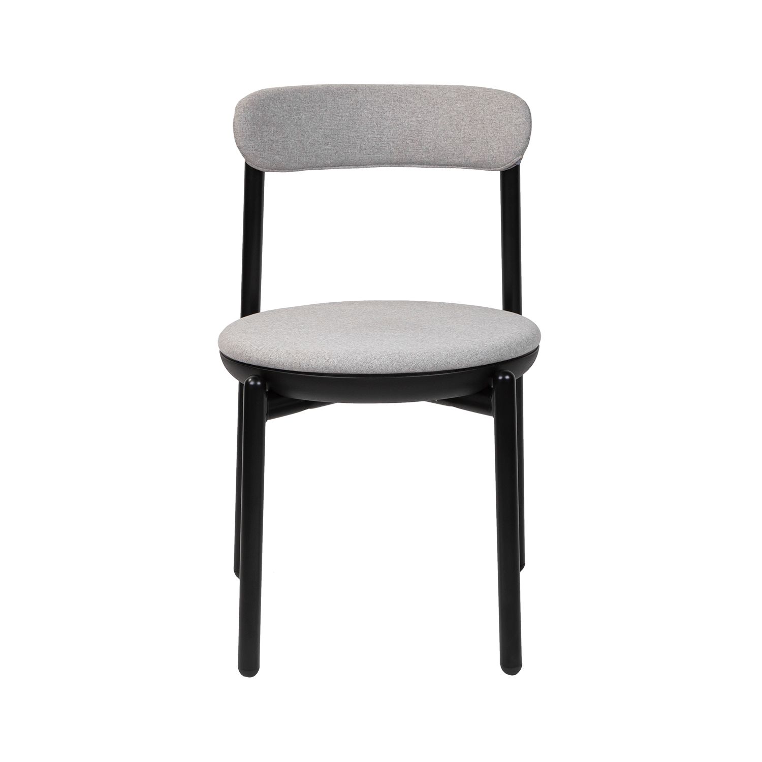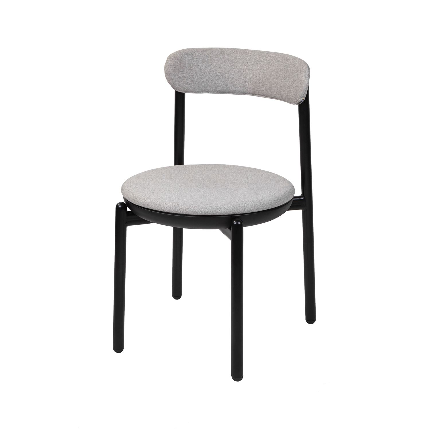 Сиденье обито приятной на ощупь тканью серого цвета — практичного, нейтрального и легко сочетаемого. Мягкий наполнитель обеспечивает комфортную посадку, а спинка из прочного пластика придаёт визуальную лёгкость и гибкость форм.